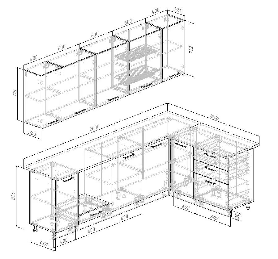 Количество напольных шкафов | 6 |